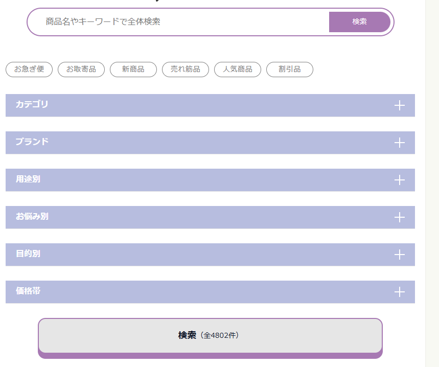 セール品やおすすめ品、ジャンル、特長などの詳細な絞り込みに対応