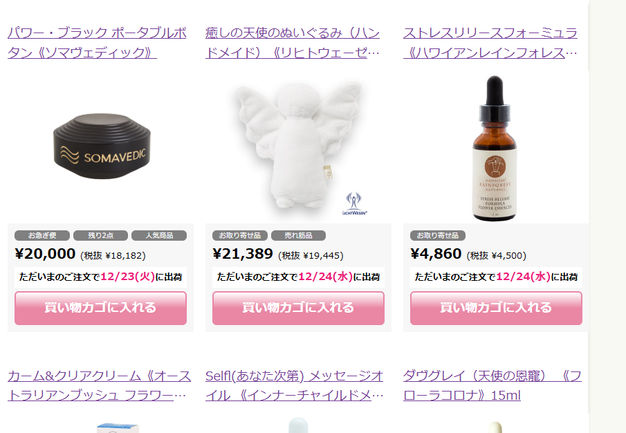 弊社運用ECサイト「フラワーレメディショップ」での実装例。